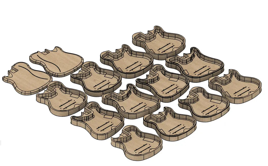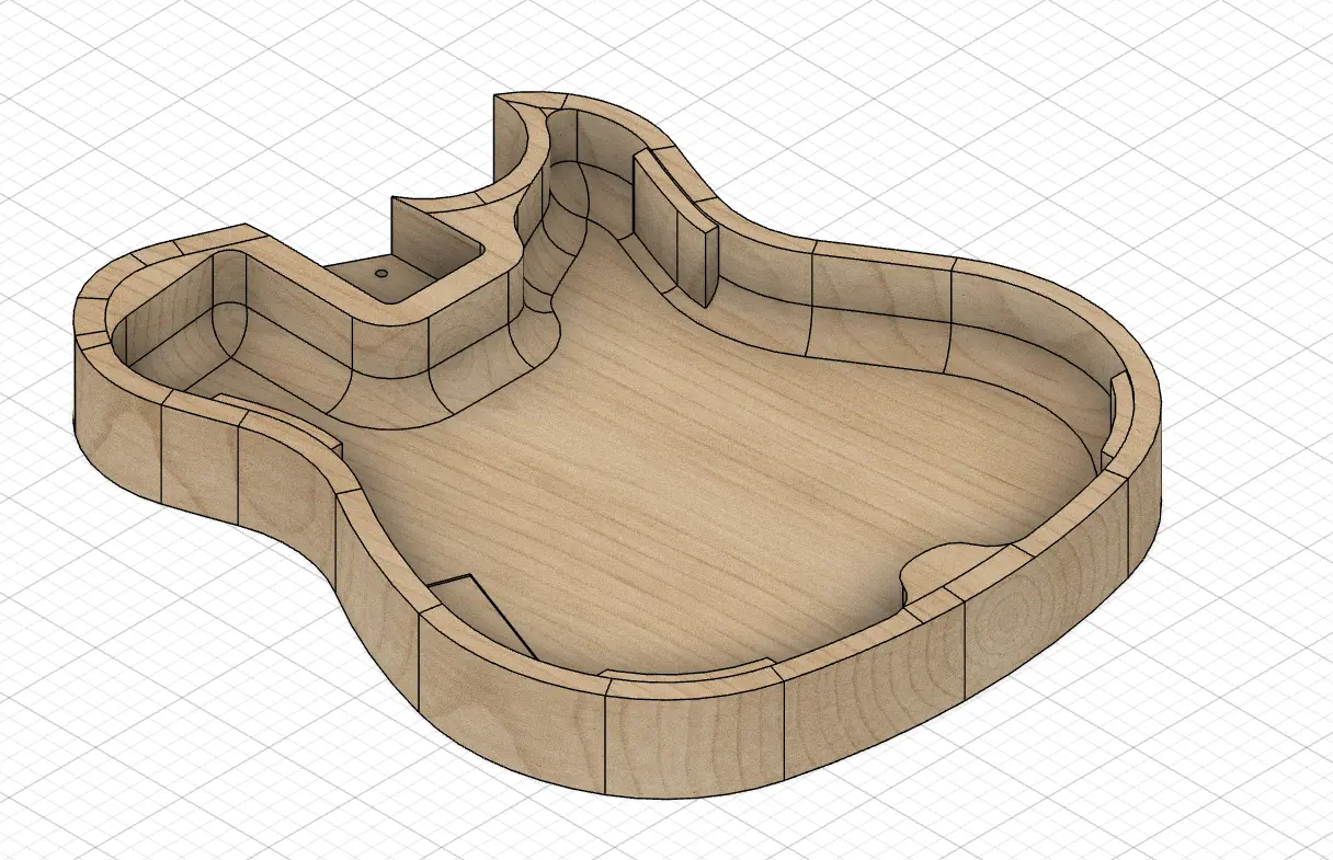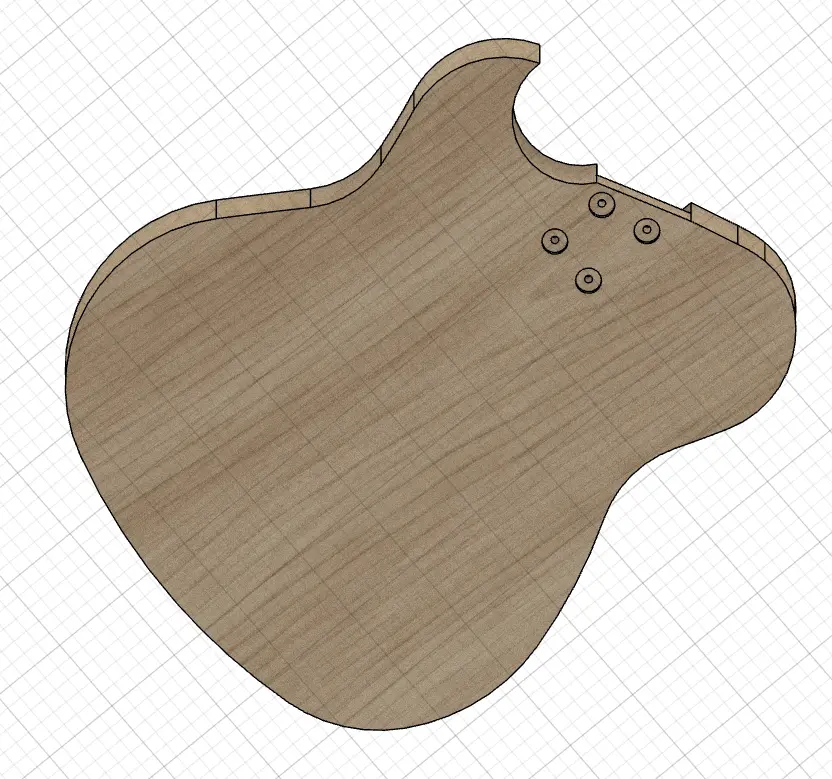 Being a fellow member of the Catapult Makerspace, eventually he and Matt worked together on the drawings. The two successfully turned all of his existing drawings into 3D - a combined total of 23 different variations of guitar bodies and bridges, across 4 unique guitar models. Things went well enough that the pair also converted Noel's newly designed Guitar Case into a 3D Model as well, for future CNC and production when things are in full-swing with the guitars.